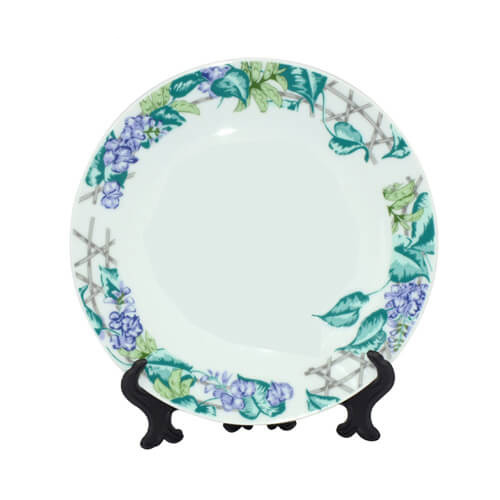 Kerámia tányér szublimációs nyomtatáshoz. Minden tányérhoz tartozik egy összecsukható műanyag állvány, amellyel jól bemutatható a tányérra nyomtatott minta. A termék versenydíjnak, köszönőajándéknak, emléktárgynak, illetve egyéb célokra is alkalmas.