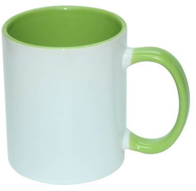 Fehér, poliészter bevonatú JS Coating FUNNY kerámiabögre színes füllel és belső résszel, szublimációs nyomtatáshoz. Minimális megrendelés: egy bögre. A JS Coating egy szabadalmaztatott szublimációs bevonat, amely fehér (átlátszatlan) alapozó lakkrétegre kerül, így tökéletesen fehér színt és maximális szilárdságot kölcsönöz a bögrének, emellett észrevehetően javítja a nyomtatott minta minőségét.