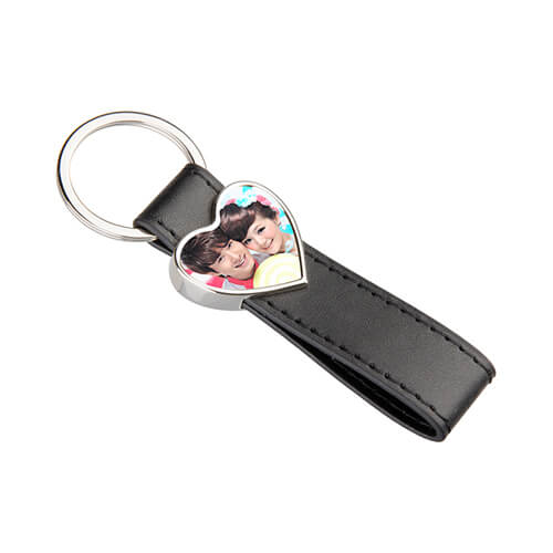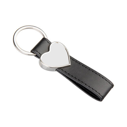 Szublimálható bőr és fém kulcstartó szív alakú - fekete
