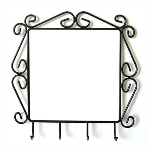 Fekete fémrudakból készült fogas. A minta a 15 x 15 cm-es (külön kapató) kerámia csempére kerül.