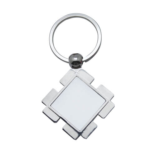 Ezüst színű kulcstartó szublimációs nyomtatáshoz. A minta a (mellékelt) fémlemezen található nyomtatási felületre kerül, ezt a függődísz rovátkolt részébe szükséges illeszteni. A kulcstartót fekete bársony rögzítő elemes fekete ajándékdobozba csomagoljuk. Az elkészült kulcstartó ideális ajándék.