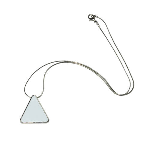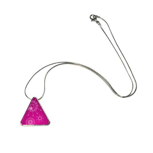 Fémláncos nyaklánc háromszög alakú medállal, szublimációs nyomtatáshoz. A minta a (mellékelt) fémlemezre kerül, majd ezt szükséges a rovátkolt részbe illeszteni. A termék eredeti ajándéknak is alkalmas.