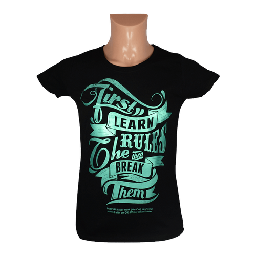 Használati utasítás a Flex-Soft papír pamut pólókon való használatához: Alacsony hőmérsékletű lézernyomtatóva / LED-del nyomtassa a mintát a Flex-Soft papír matt oldalára: