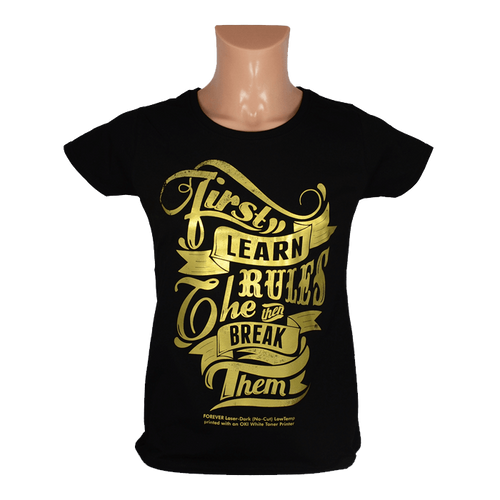 Használati utasítás a Flex-Soft papír pamut pólókon való használatához: Alacsony hőmérsékletű lézernyomtatóva / LED-del nyomtassa a mintát a Flex-Soft papír matt oldalára: