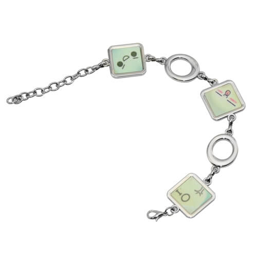 Ezüst színű fém karkötő szublimációs nyomtatáshoz. A minta a (mellékelt) fémlemezekre kerül, ezeket a rovátkolt részekbe szükséges illeszteni. Az elkészült termék egyedi ajándéknak is alkalmas.