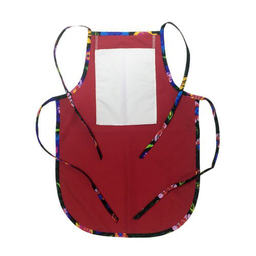 Színes konyhai kötény gyerekeknek, fehér zsebbel szublimációs nyomtatások készítéséhez.