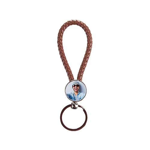 Kulcstartó szublimációs nyomtatáshoz. Fémből készült, bőrfonattal. A nyomtatást a mellékelt fémlemezeken végzik, amelyeket erre a célra kialakított, megmunkált aljzatba kell ragasztani.