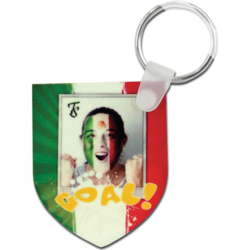 Műanyag medál - pajzs - fém kulcskarikával a szublimációs technológia nyomtatásához.