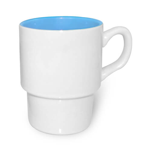 Fehér, A+ besorolású kerámia retro bögre világoskék belső résszel, poliészter borítással, szublimációs nyomtatáshoz.