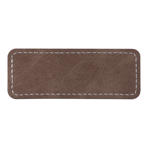 Szublimálható téglalap alakú bőr kitűző. Biztonsági tűvel rögzíthető.