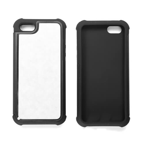 Műanyag-gumi iPhone 5/5S tok szublimációs nyomtatáshoz. Tökéletesen védi a telefont a mindennapos használat okozta kopástól. A minta egy fémlemezre kerül (a csomag tartalmazza), miután a tokra helyezték a lemezt.
