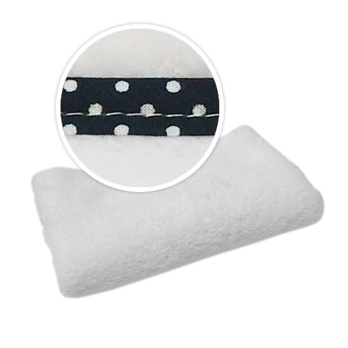 Babatakaró fekete, polka pöttyös szegéllyel, szublimációs nyomtatáshoz.