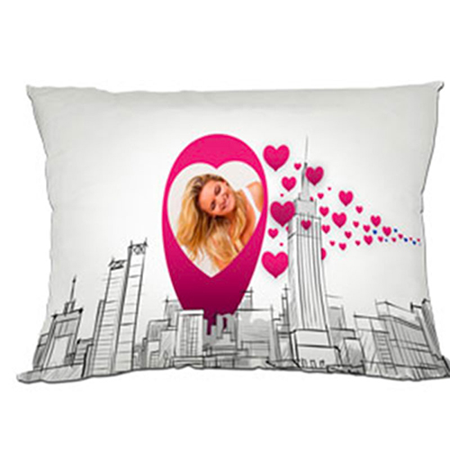 Kétszínű szatén huzat "Rózsaszín szívek" mintával és kerettel a szublimációs nyomtatáshoz.